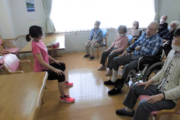 お客様とともにスタッフも参加しますが、意識して動かすことで体の筋肉がほぐれていくのを感じます。