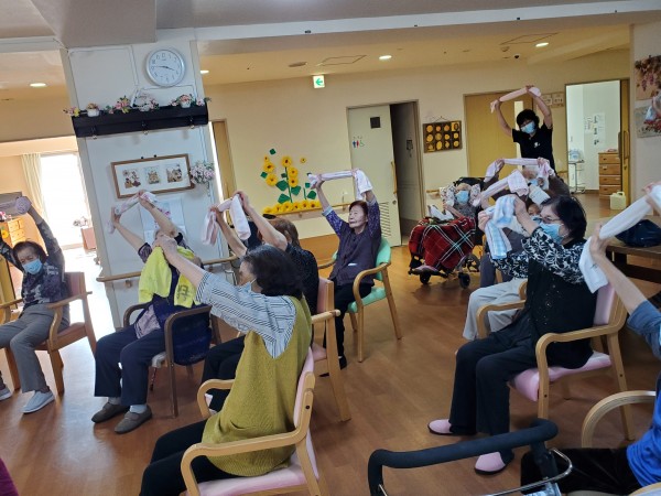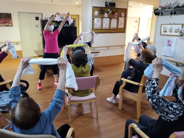 こちらも先日の出来事になりますが、高橋先生による訪問のタオル体操が行われました!