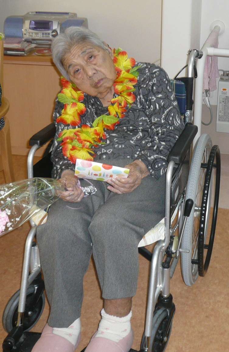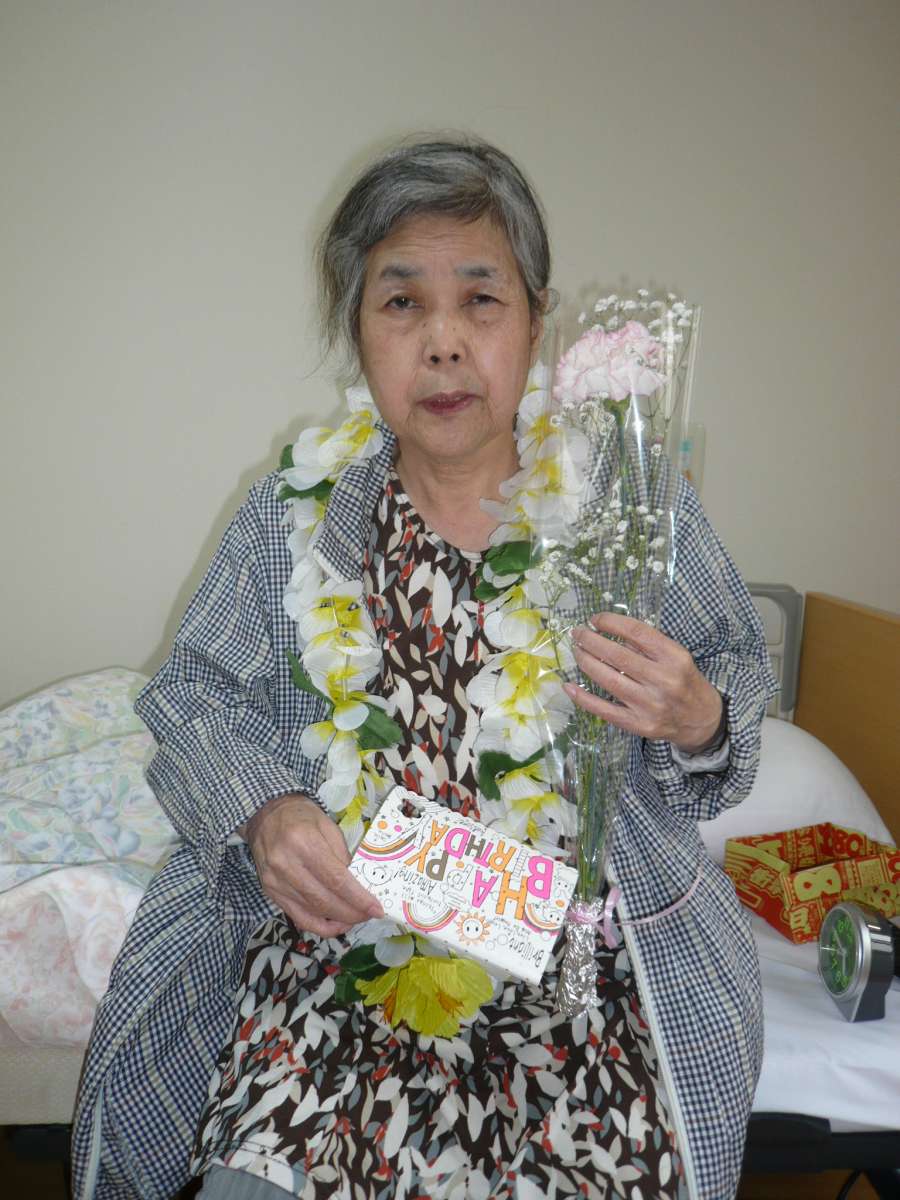 和やかムードで華やかな首飾りを掛け、めでたい誕生日会を迎えることが出来ました。本当におめでとうございます!歳を重ねるごとに貫録というのは出てきます。いつまでも元気でいて下さい!