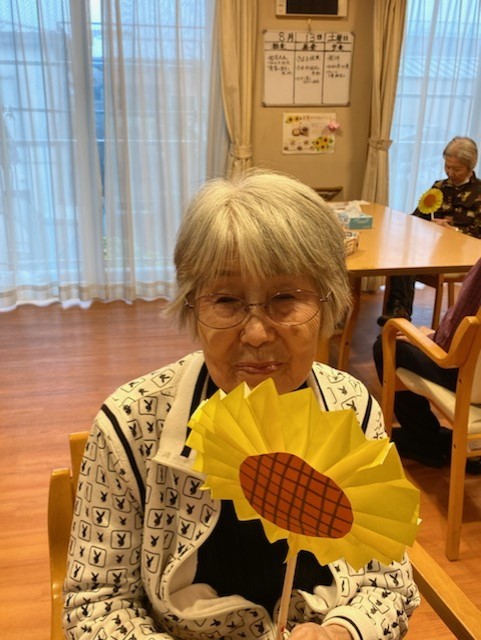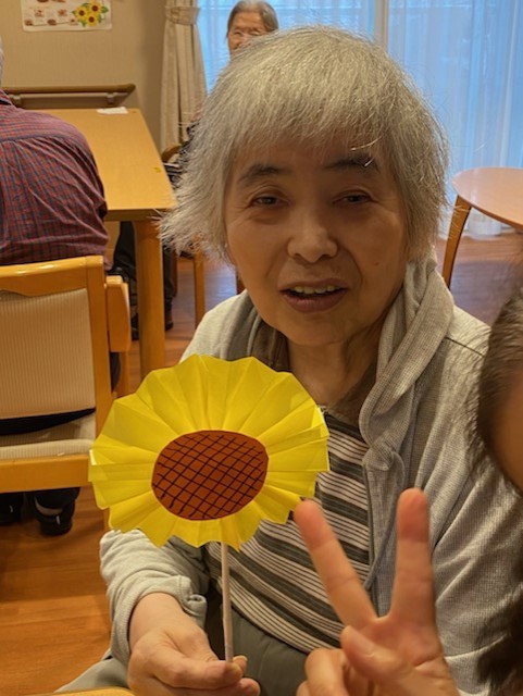 岩槻本町のフロアでは、レクリエーションにて、折り紙のひまわり作りが行われました( *´艸`)