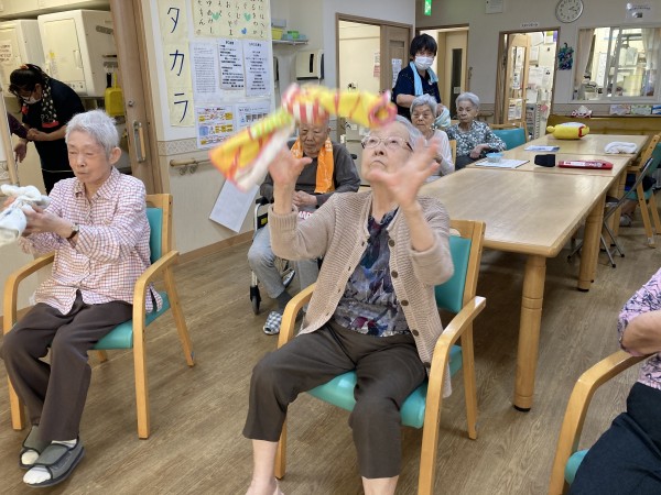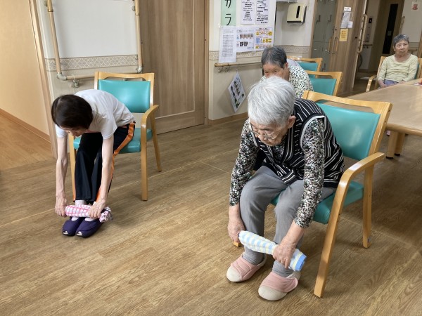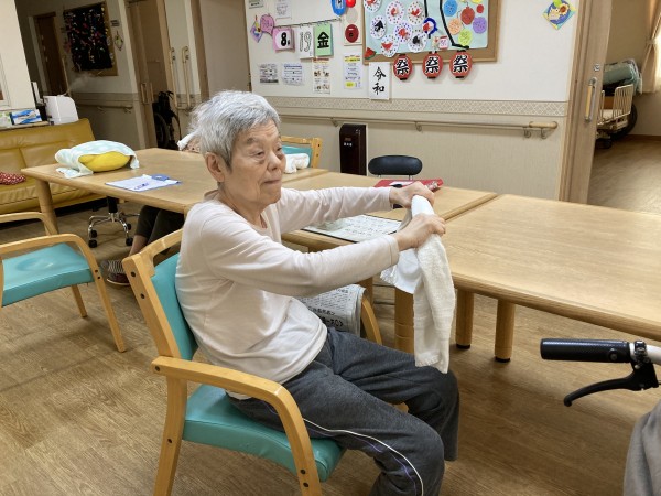 手、足を伸ばしたり、タオルを投げたり回したり真剣に動かされていました。