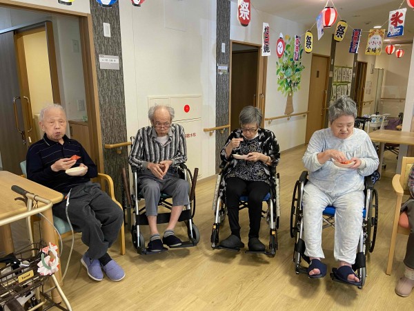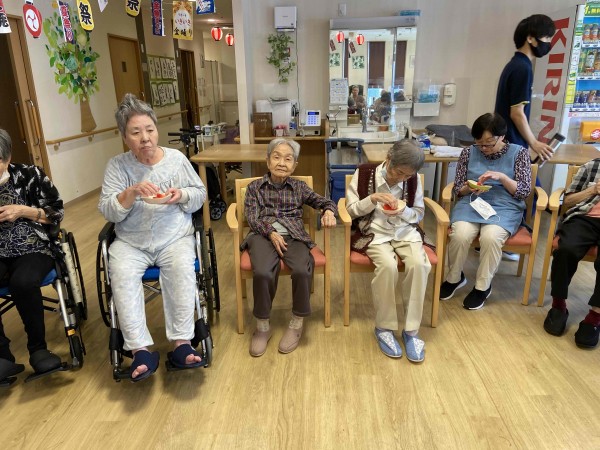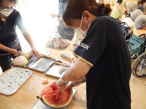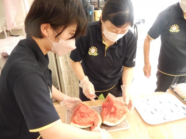 こちら(-その2-)では、割った“すいか”をご利用者の皆さまと一緒に美味しくいただいた様子をご紹介します(^_-)