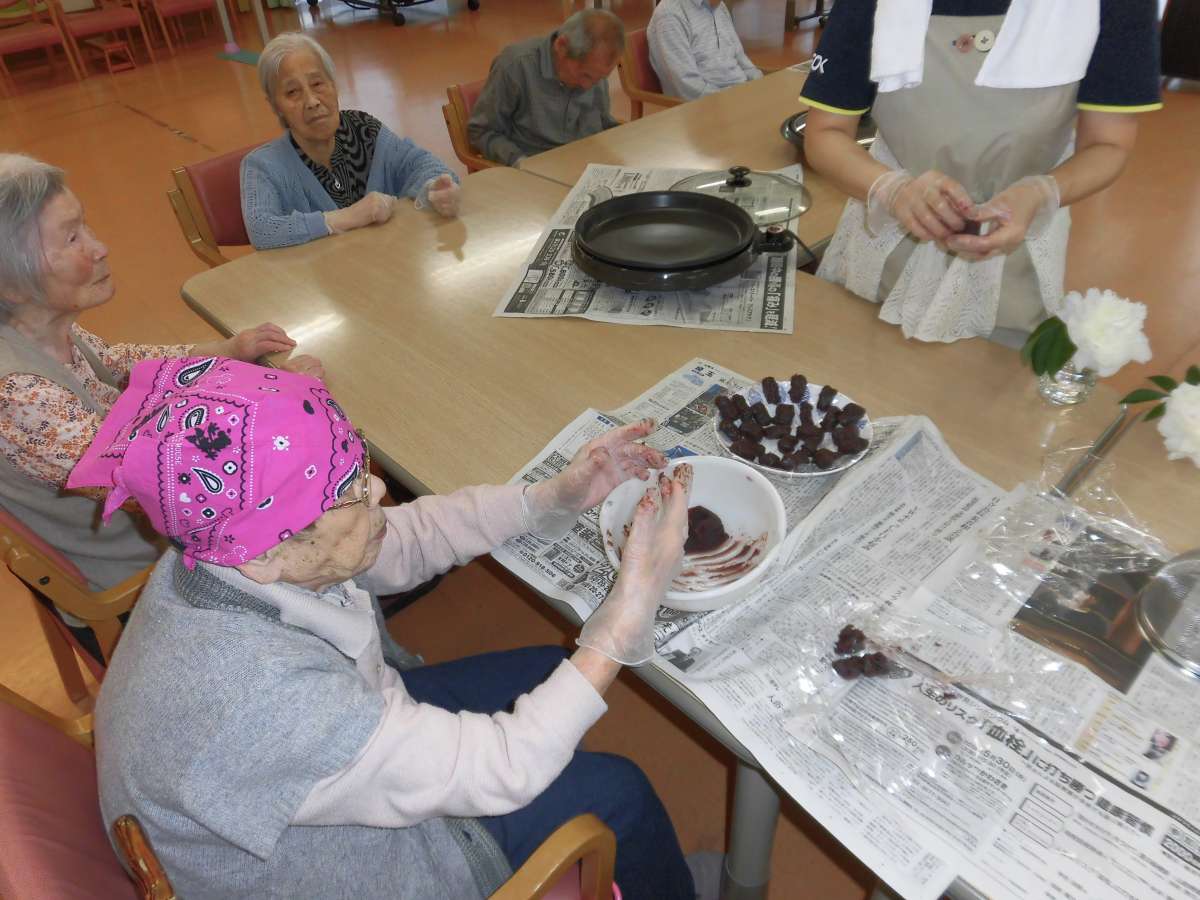 5月5日は子供の日。それにちなんで、レクにて、柏餅風クレープを