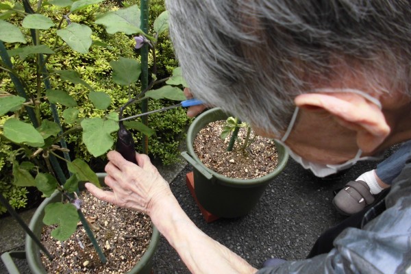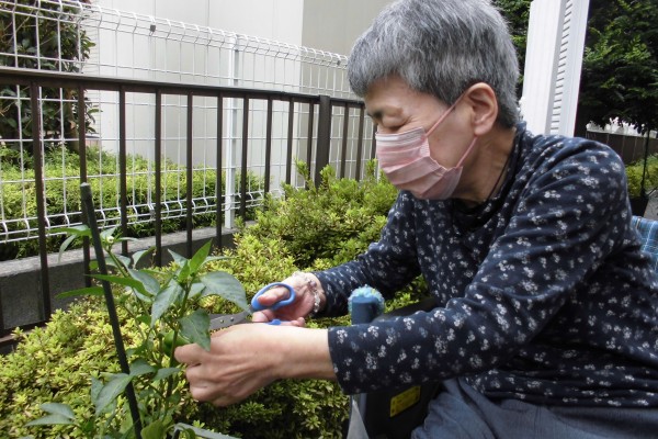 初めてのナスとピーマンの収穫ということで、スタッフもドキドキ…お客様もドキドキです…