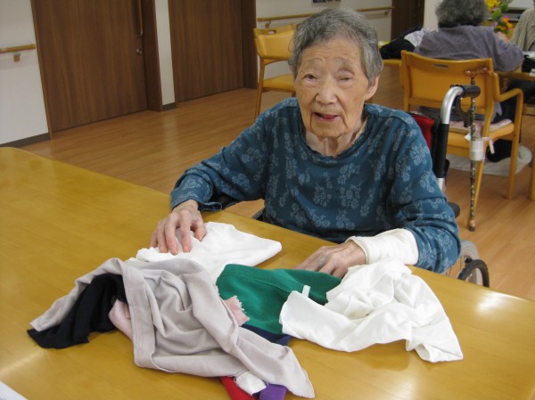 こんにちは! グループホームみんなの家・あきがせの介護ブログです! よろしくお願いいたします。 今日は洗濯物畳み当のお手伝いのご様子をお知らせいたします!!
