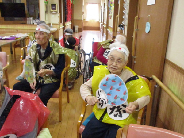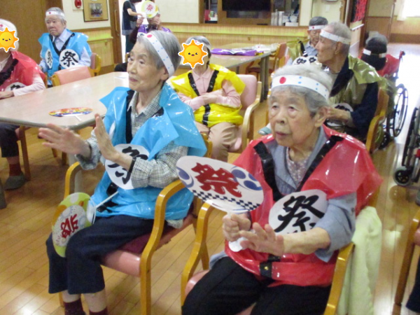 ご利用者様には少しでも夏を感じていただきたく、今年は7月・8月と2回にわたって盆踊りを行いました(^o^)丿