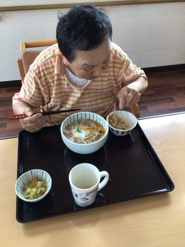 本日の昼食は秋を感じさせる月見そばでした(o^―^o)