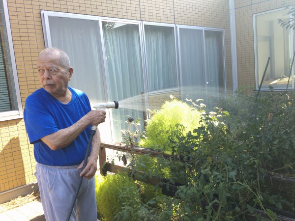 暑い中沢山の野菜やお花に水やりをして下さるご利用者様・・・