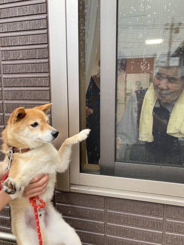 利用者様が飼っていたワンちゃんをご家族様が連れて来て下さいました。窓越しではありましたが久しぶりに会えて嬉しそう〜♪