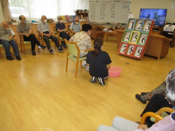 こんにちは、デイサービスセンター遊・西東京です。今日の運動レクレーションは『ストラックアウト』です。