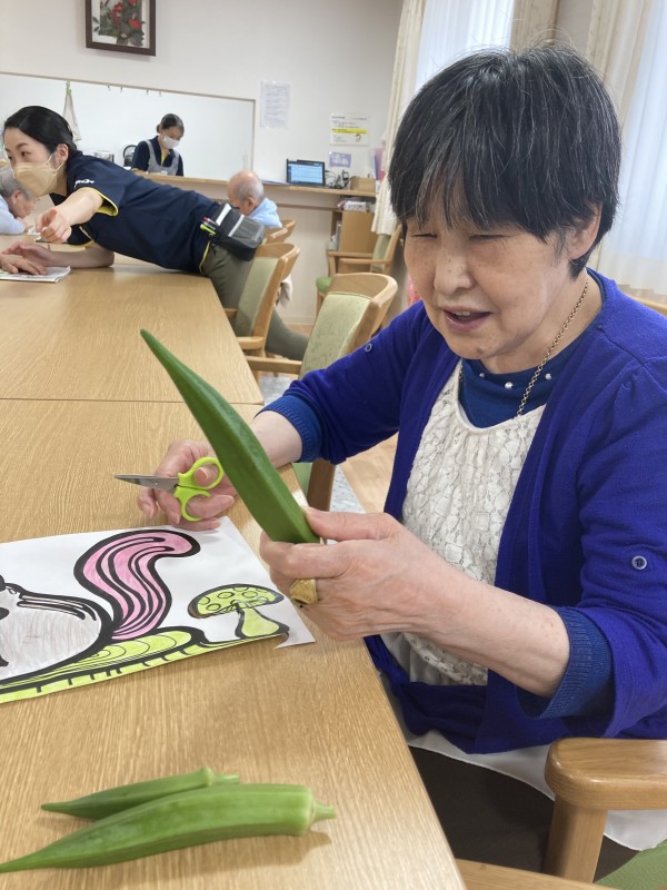 今日のお昼ごはんは醤油ラーメンでした。少し具の少なめのラーメンだったので、我が吉川の立派な畑で育った、これまた立派なオクラを入れる事にしました。あまりにも見事に育ったオクラ、皆さんびっくり!ラーメンにオクラ?と思いましたが、皆さん、美味しい、美味しいと喜んで召し上がっておりました。