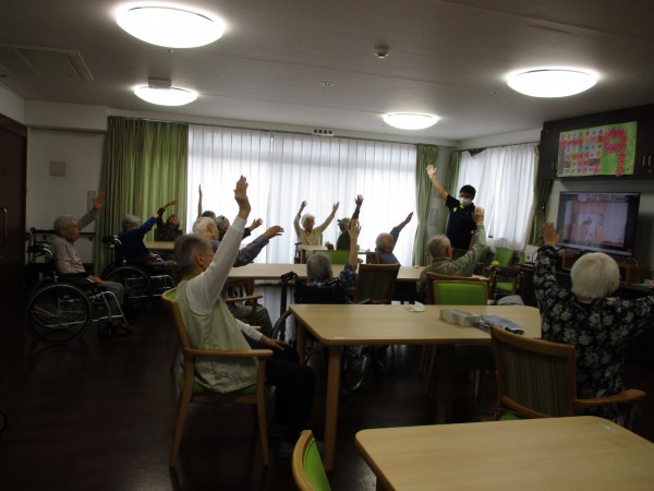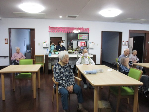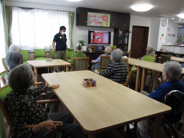 ご参加される入居者様は2階に集まっていただき、
