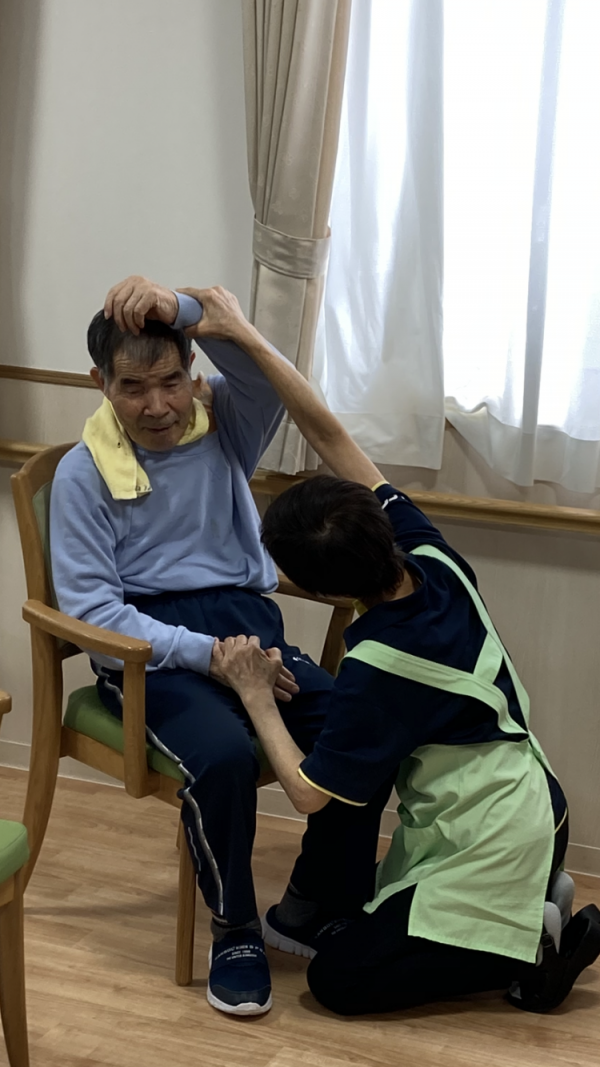 頭・耳・口・腕・脇・足、ゆっくり呼吸をしながら身体を動かします。