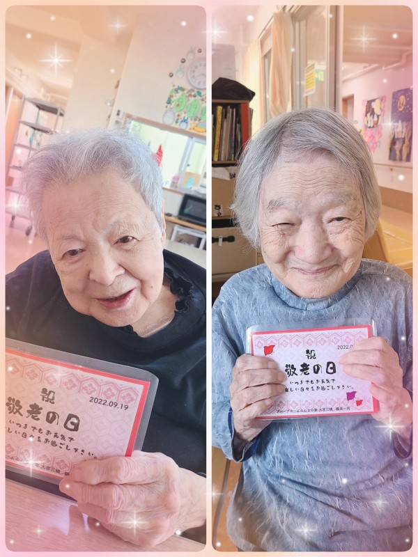 【敬老の日】ですね。今は面会が出来ず直接ご家族様がお祝いの言葉を伝えることが難しいご時世ではありますが、