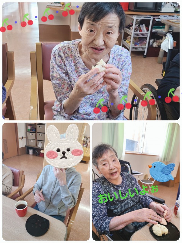 今回は、敬老の日なので手作りの紅白まんじゅうを召し上がって頂きました。