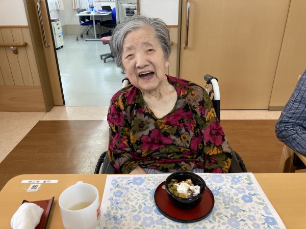 長寿のお祝いの後はあんみつを皆で頂きました。 やっぱり甘いものは笑顔が勝手に出てしまいますよね。