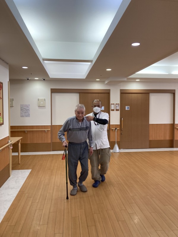 訪問マッサージの先生によるご利用者の歩行訓練の様子です。