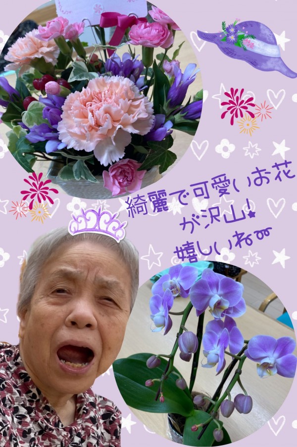 ご家族様からの素敵なお花の贈り物とても喜ばれました('ω')♡素敵なお花をご鑑賞されとっても幸せそうな笑顔です(´ω`)