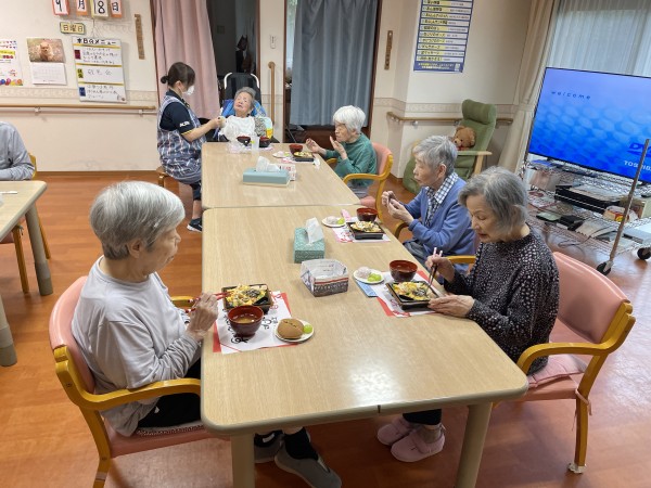お祝いのお弁当を見て利用者様は、こんな豪華なの久しぶりね!と笑顔で喜ばれてました。