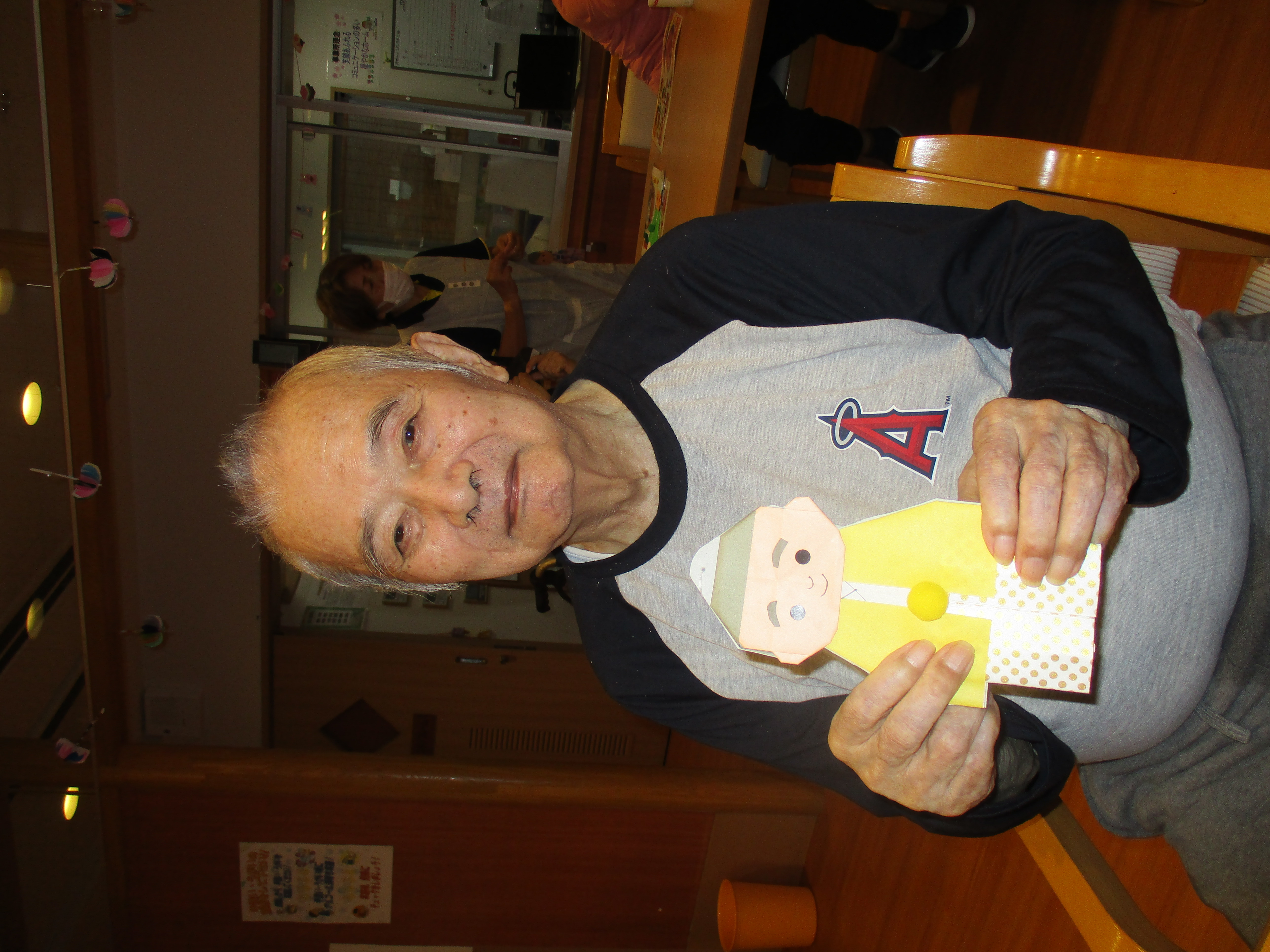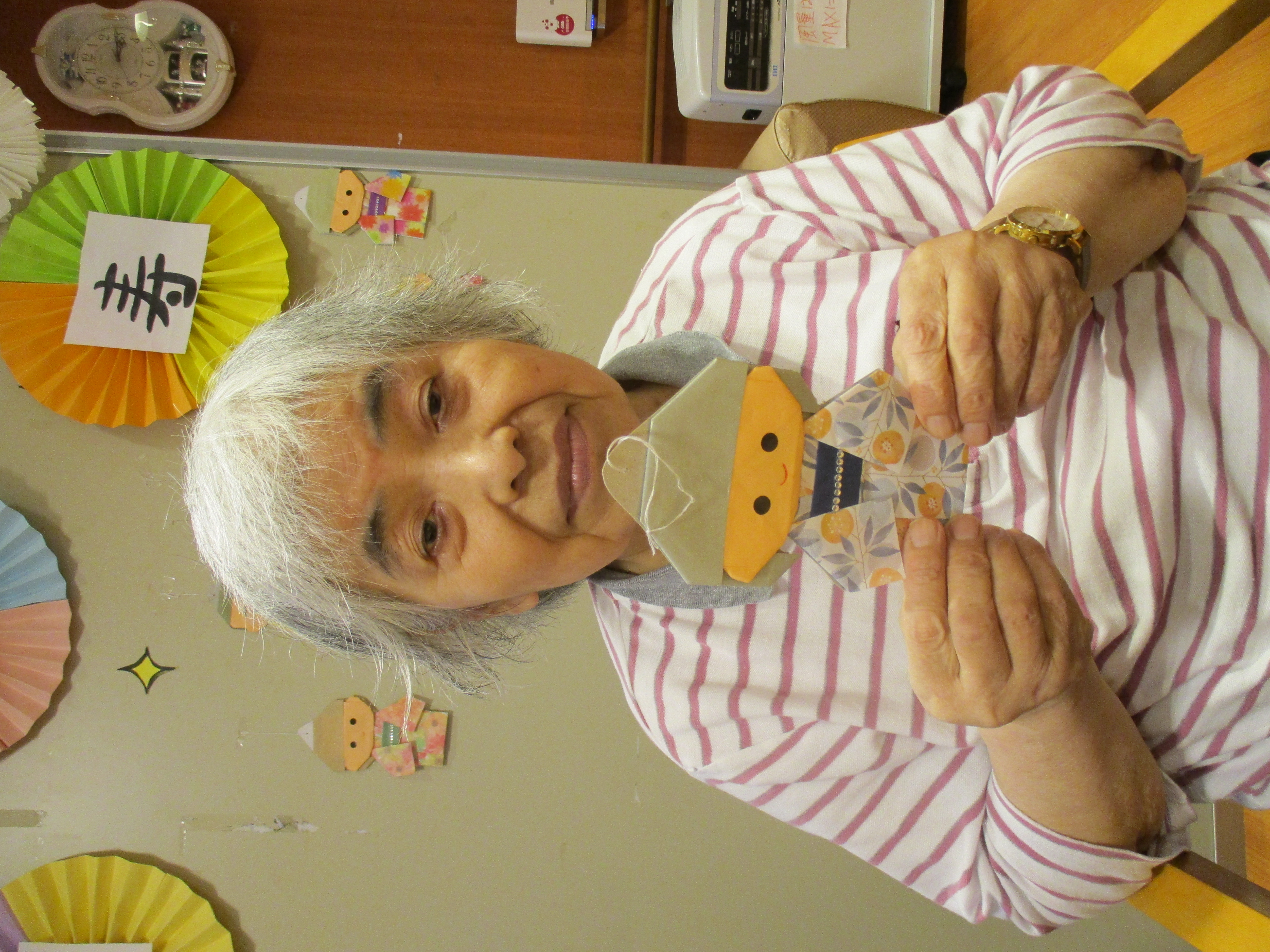 スタッフからお祝いの気持ち込めて、カードと、似顔絵の折り紙を贈呈しました(>_<)