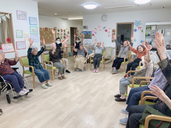 夏祭り気分に大盛り上がりで、歌って踊って楽しみました☺