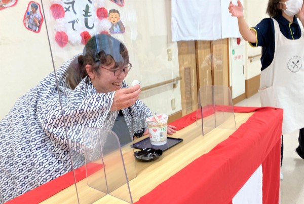 さずが介護スタッフ。食事介助はお手のもの♪上手すぎてこれはもうスタッフNの演技力に注目です(笑)