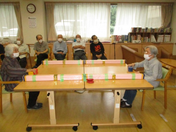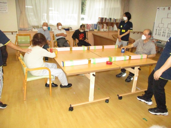 本日の運動レクレーションは『テーブルホッケー』です。2点先取のトーナメント制で開催しました。