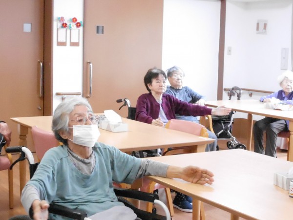 本日、2Fと3Fのご利用者様でリモートのいきいきリズム体操を行いました。