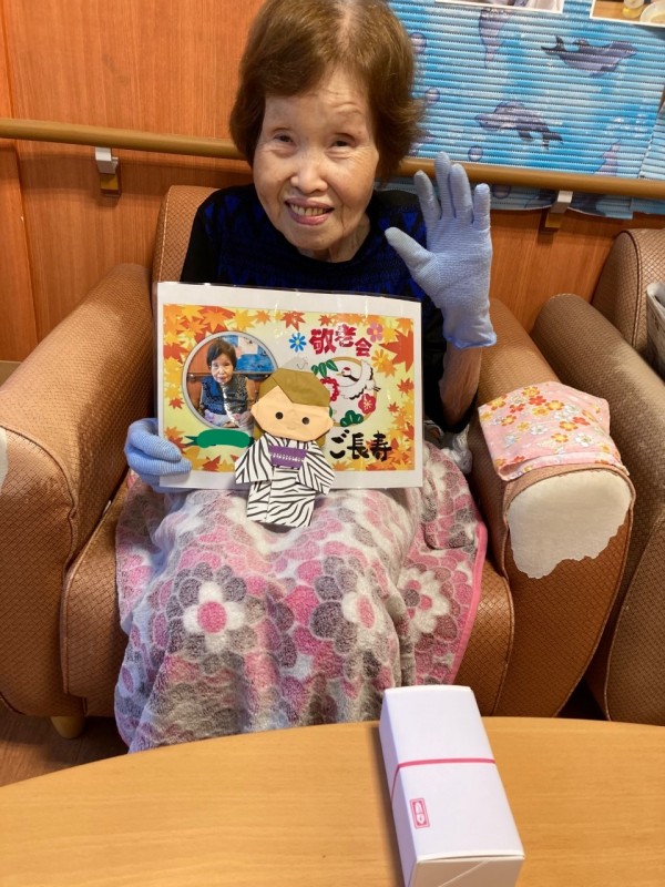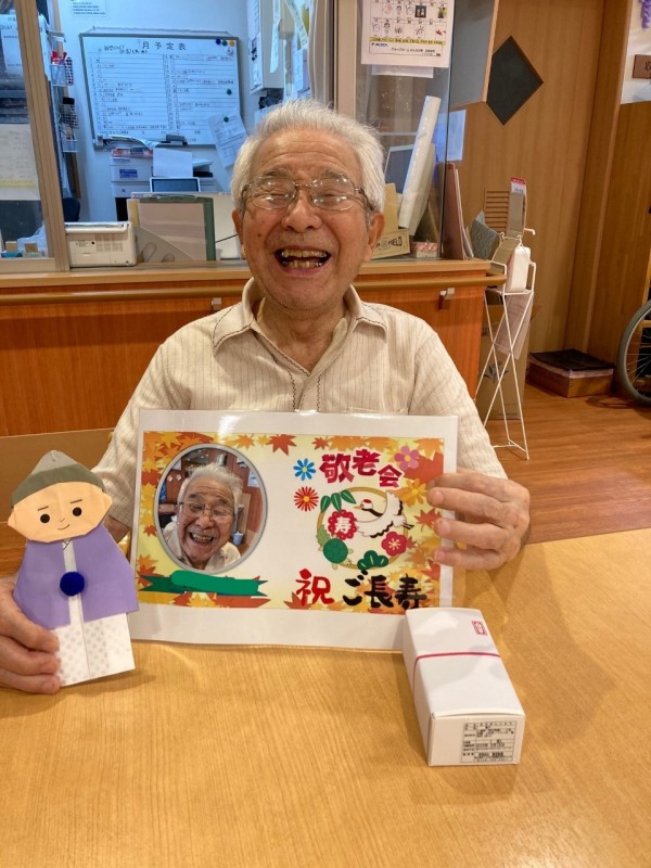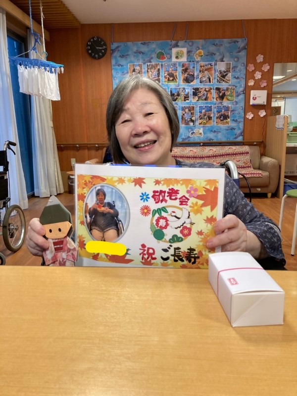 皆様と楽しいお話をしながら、似顔絵の折り紙とメッセージカード贈呈、