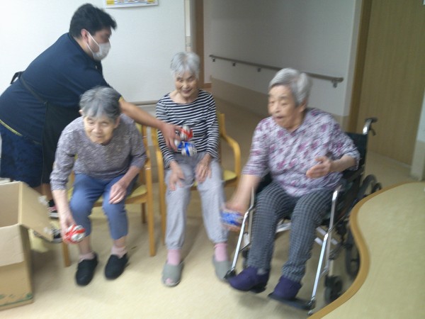 玉入れは両手に玉を沢山抱え籠に目掛けて思いっ切り投げてくれました。