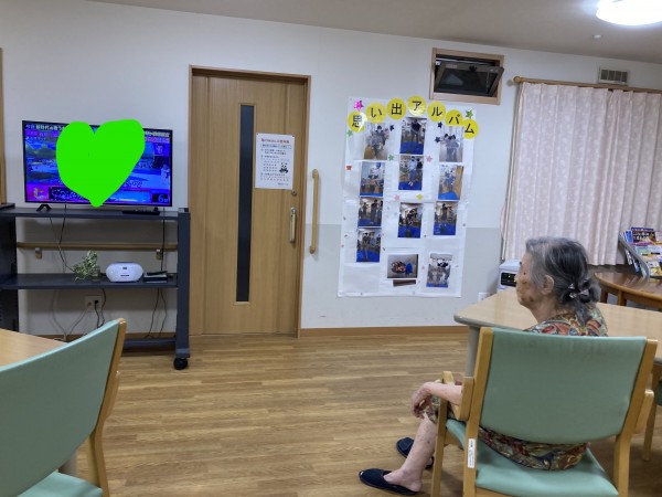 他の入居者様とテレビ番組を見ながらお喋りされていました♪ 今はテレビ画面にくぎ付け?