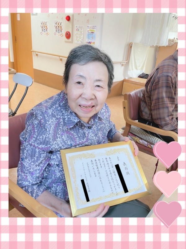 3階では、喜寿、傘寿、米寿の方が居たのでお祝いしました"(-""-)"