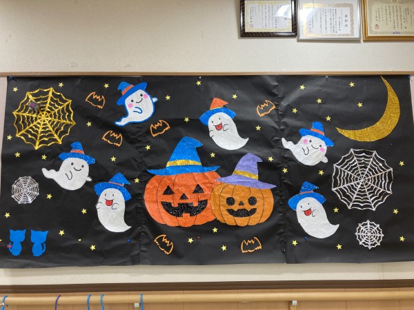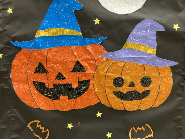 今回の壁画はカボチャやお化けはちぎり絵で出来ています。