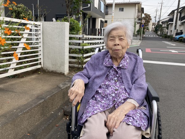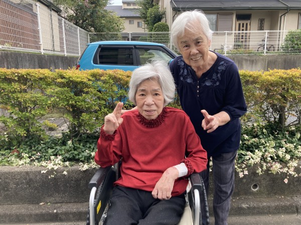 入居者様たちと一緒に近所をゆっくりとお散歩しました。