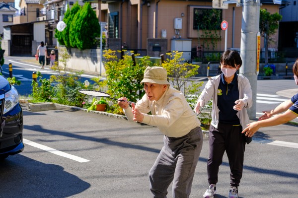 白いシャトルを追いかける