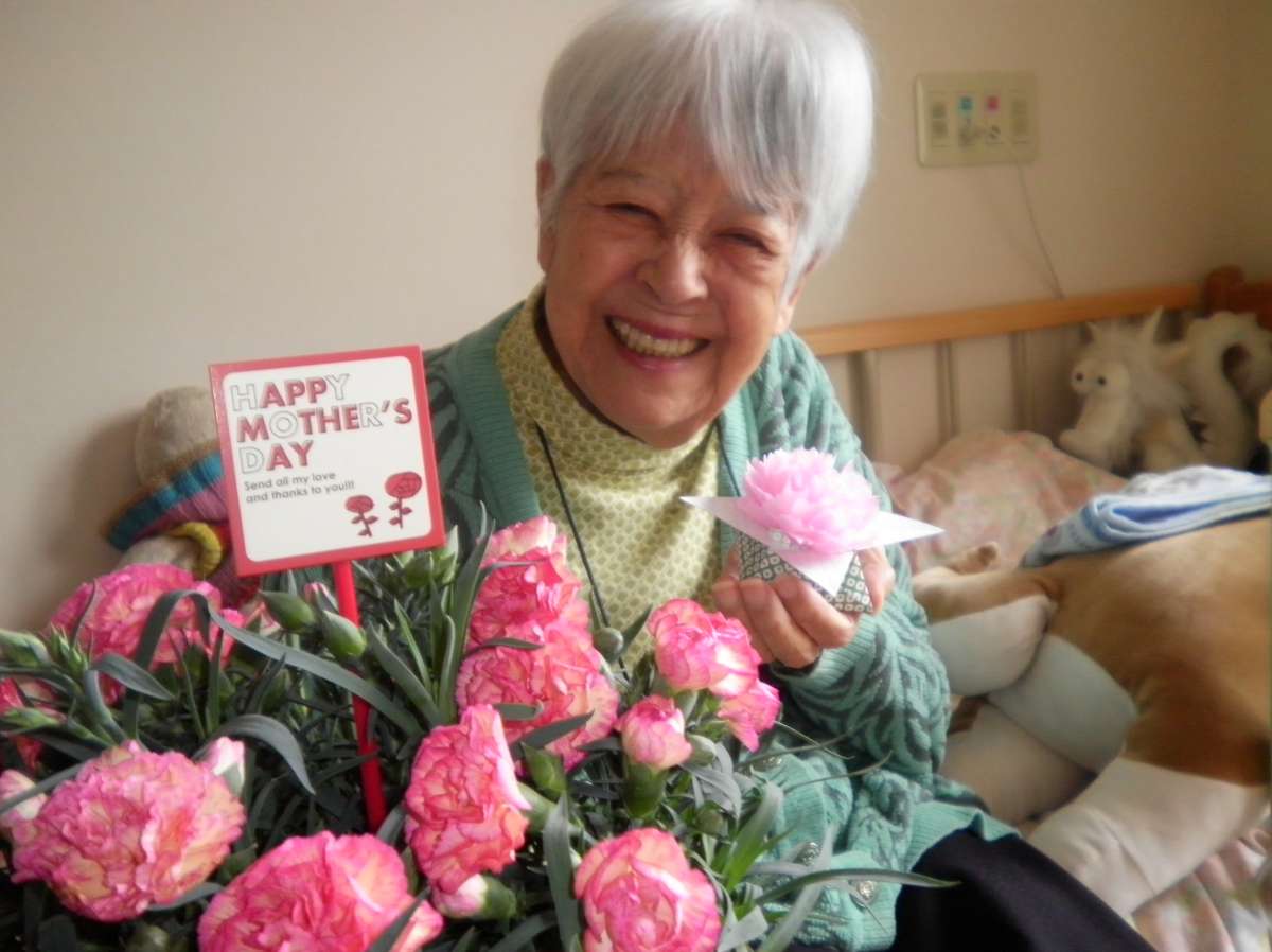 母の皆様にはスタッフさんが心をこめて作りましたカーネーションをプレゼントいたしました。