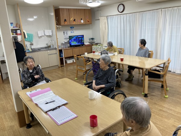 夜勤明けのスタッフが声を掛けて、少しずつ集まってきております。