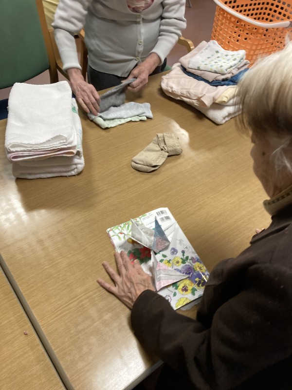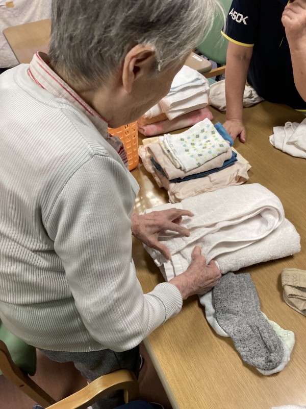 今日は洗濯物をご利用者様に畳んで下さいました。