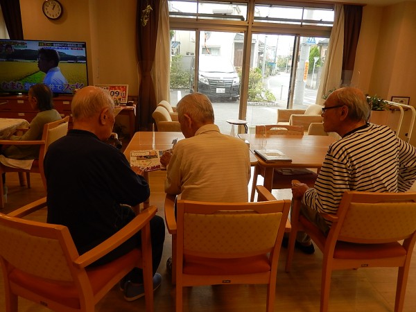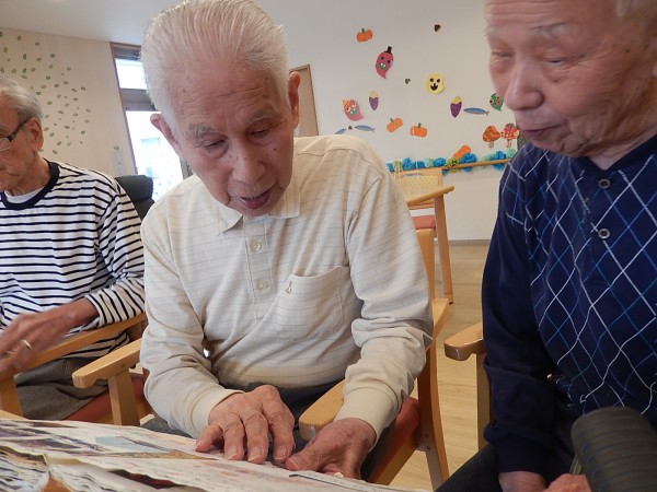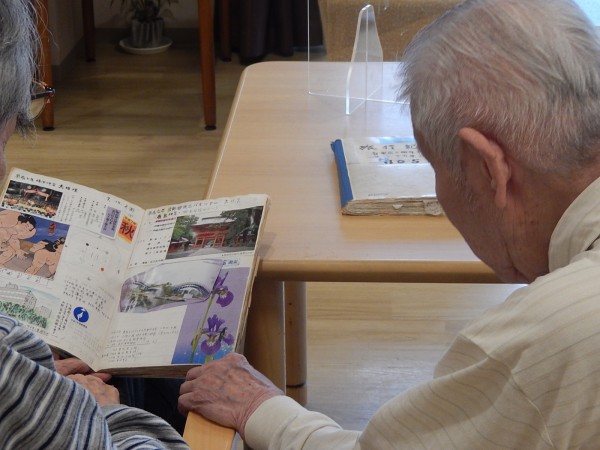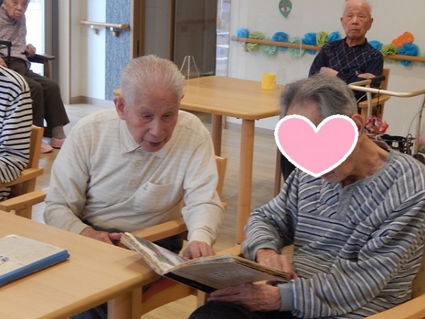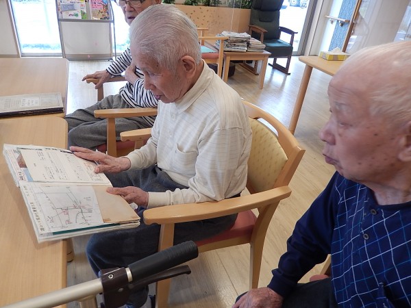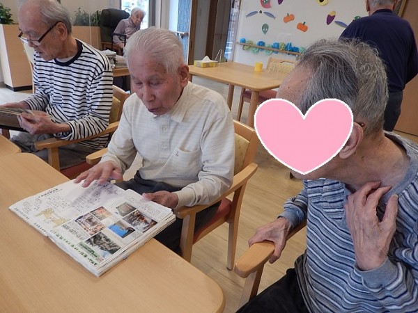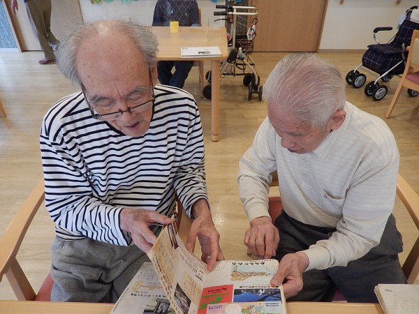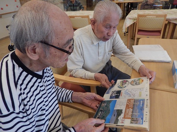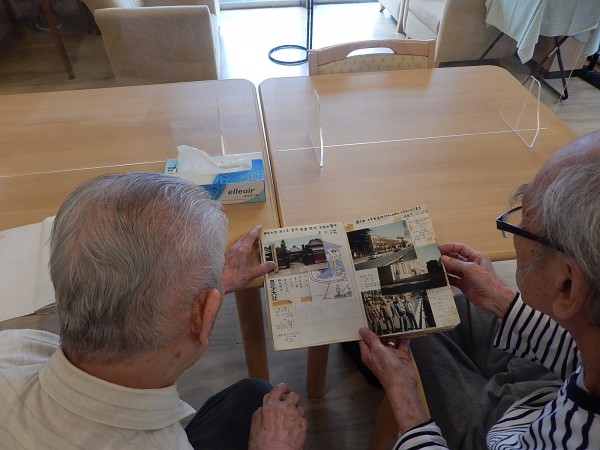 男性のご利用者さまのお一人が“ご自身の旅行記”を食堂で見ていたところ、他の男性ご利用者様たちが自然と集まってきましたぁ(^.^)