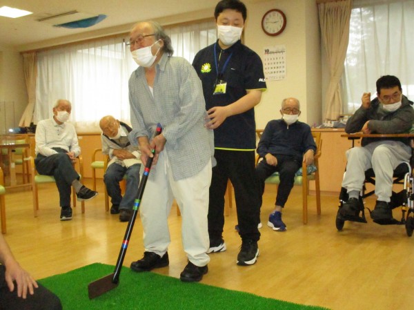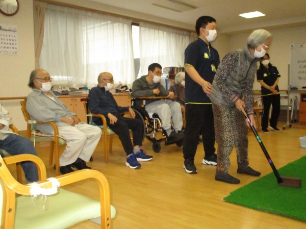 こんにちは!デイサービスセンター遊・西東京です。本日の運動レクレーションは『パターゴルフ』です。