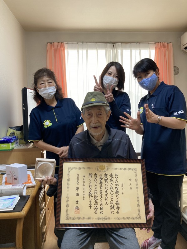 百寿のお祝いの賞状と記念品が贈られてきましたので