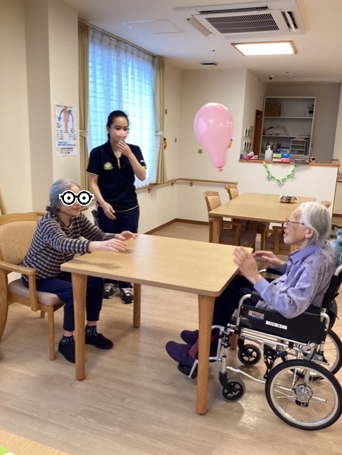 今日のように風船バレーをしたりカラオケをしたりして過ごしています。