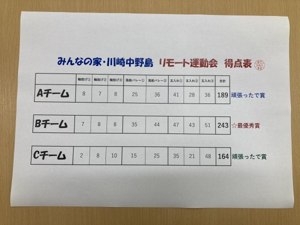 「みんなの家・川崎中野島」リモート大運動会も無事に終了!