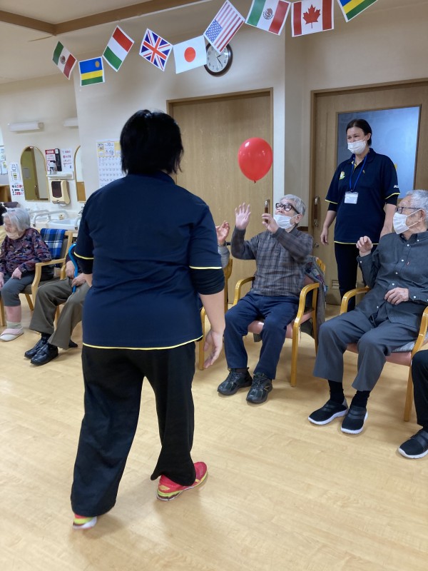 運動不足の職員がかわるがわる、利用者様のアタックを受け、次へつなげていきます♪