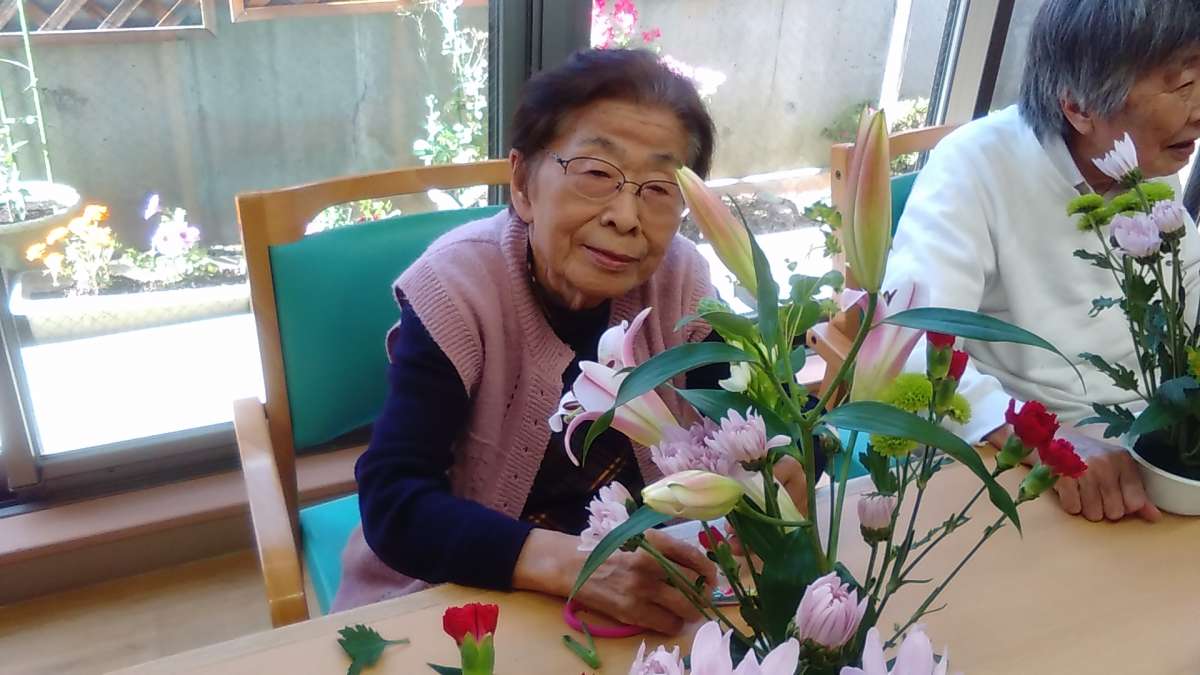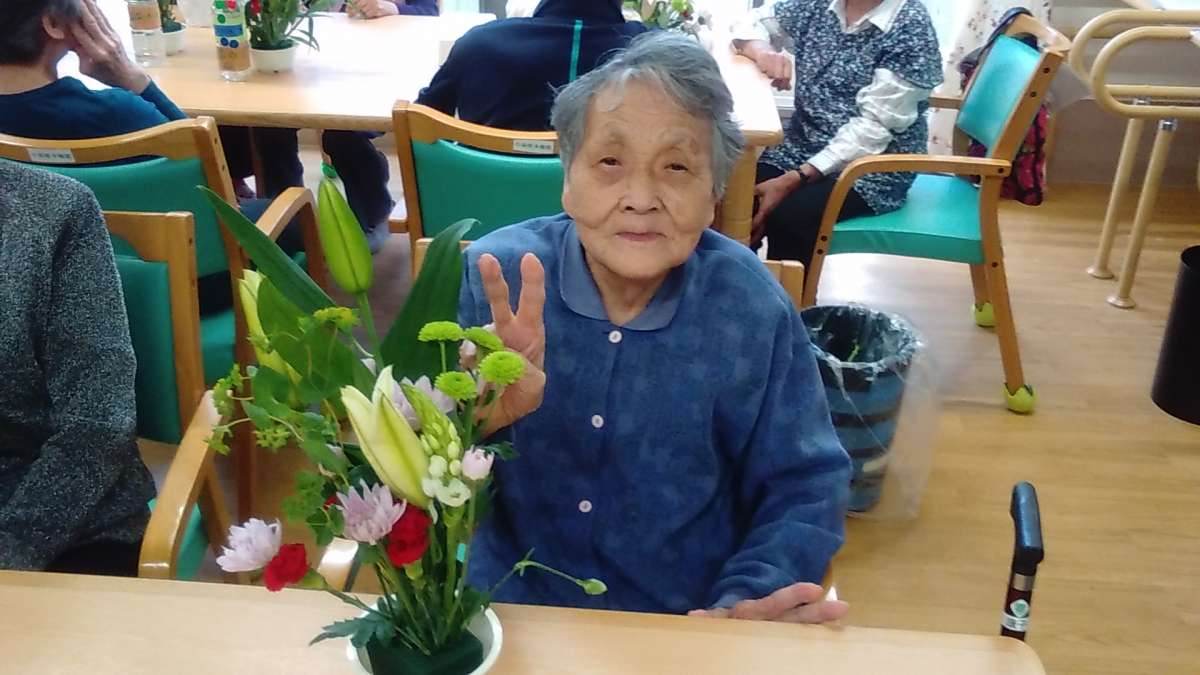 5月14日(月)はグループホームと合同でフラワーアレンジメントをしました!!みなさん数を重ねる毎にお花の扱いが上手になっています(*^_^*)ユリの花がいい香りでした♪