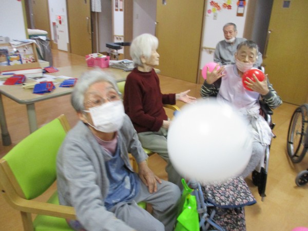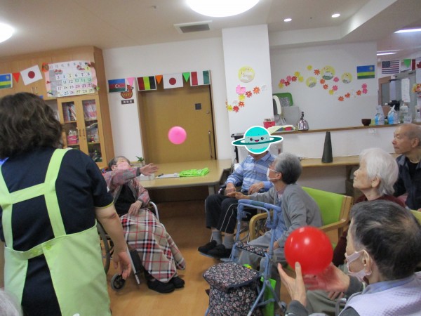 風船バレーでは何個かの風船バレーがアチラコチラに飛んでいくので