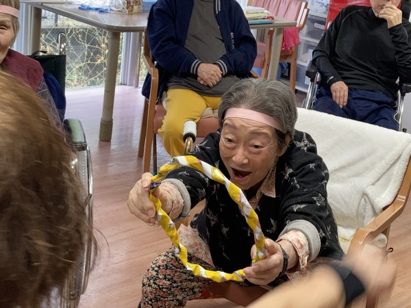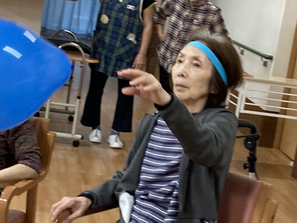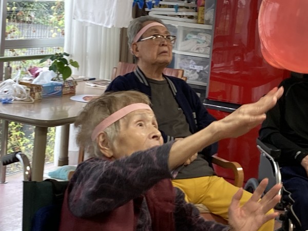 職員さんとご利用者様でパス(トス)を