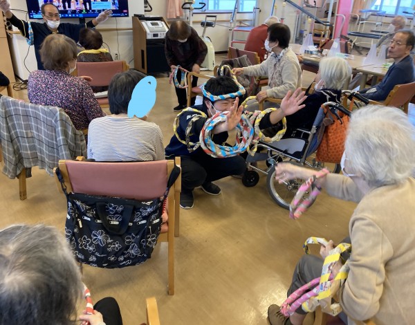 職員の手や首めがけて輪っかを投げていただきました(^-^)