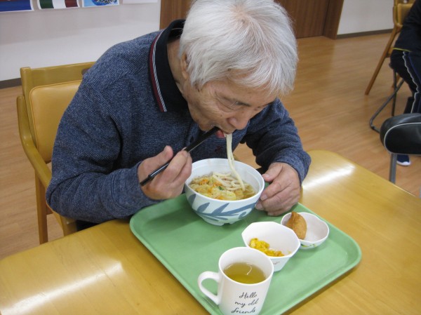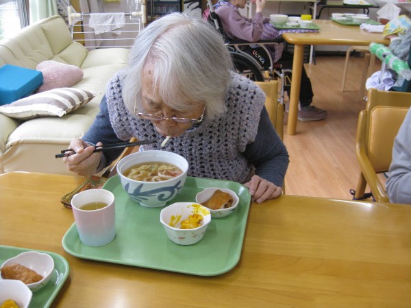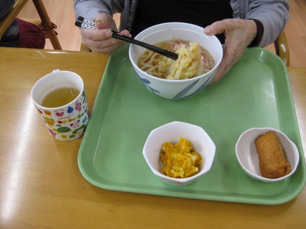 かき揚げうどん・いなりずし・南瓜サラダです。