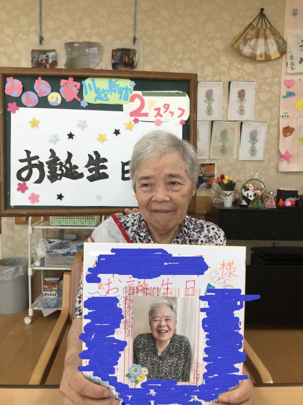 先日誕生日会が行われました。ご家族様から花束を頂き照れていました。